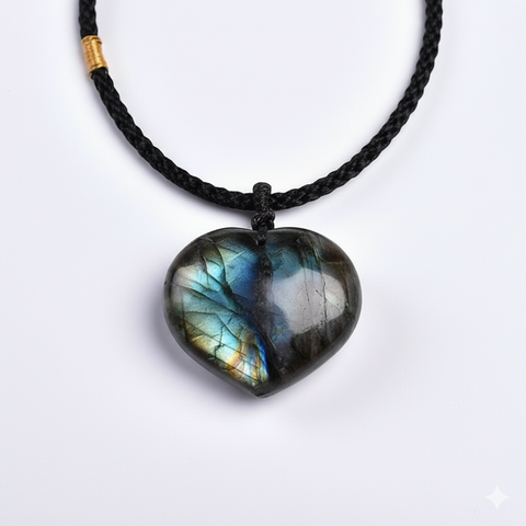 *Note d'authenticité : La Labradorite est une pierre naturelle complexe. Ses fameux reflets (la labradorescence) ne sont visibles que sous un certain angle d'incidence de la lumière. De face ou à l'ombre, la pierre peut paraître grisâtre ou noire ; c'est en la faisant bouger sous la lumière qu'elle révèle sa magie. Chaque cœur possède son propre spectre de couleurs et ses propres inclusions internes, rendant votre bijou 100% unique.